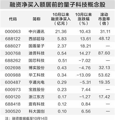 量子科技板块十月以来持续走强 融资资金大笔加仓概念股