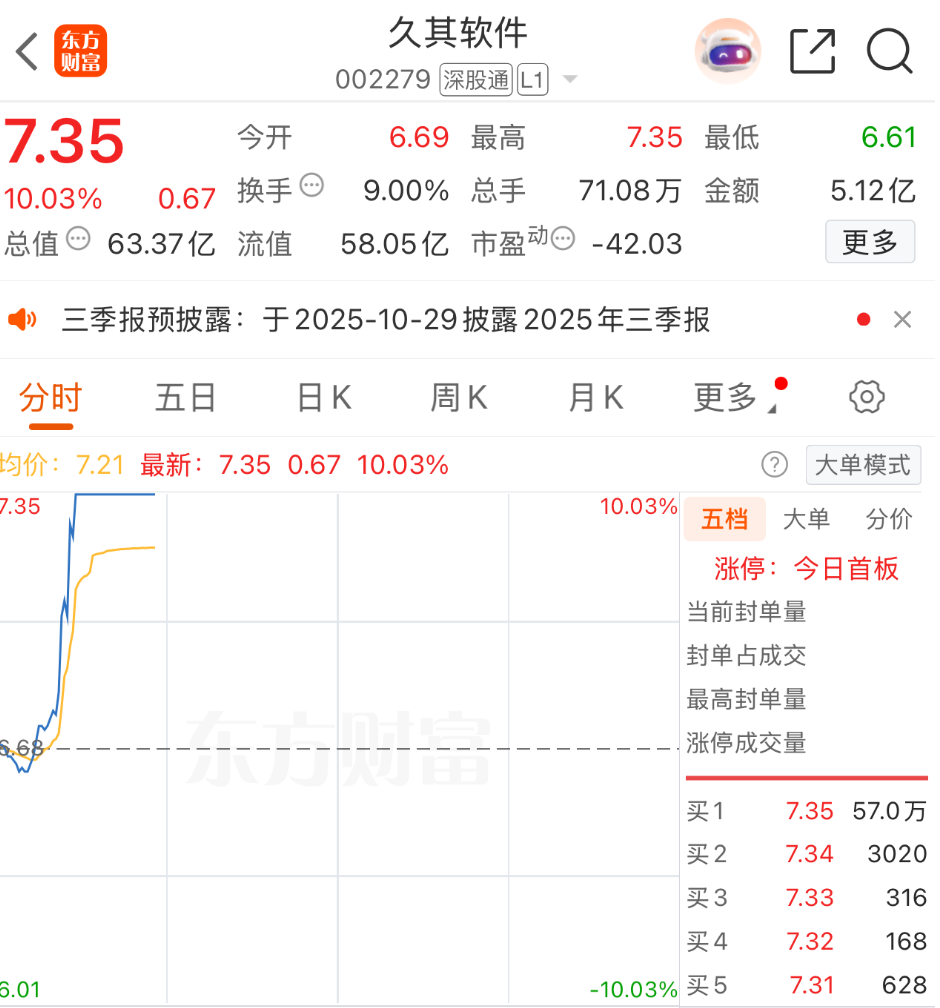 10月15日,A股开盘后,A股国产软件、软件开发板块走强,久其软件、榕基软件、格尔软件直线拉升涨停,截至10:30,品茗科技大涨超16%,浩辰软件、麒麟信安、国盾量子、浪潮软件、国子软件等个股涨幅居前。