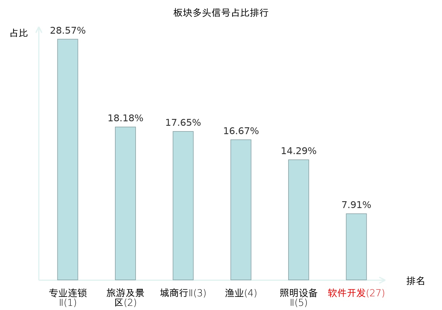从主力宝信号数据分析,格尔软件所属的软件开发板块中共有11只股票发出主力多头信号,主力多头信号占比在全行业中排名第27位,较昨日下降16位。排名的下降可能反映了主力对该板块态度的微调,但仍保持相对较高的多头信号占比,表明主力整体对该板块仍持积极态度。全市场所有行业板块中,专业连锁Ⅱ板块的主力多头信号占比最高,位居第一;专业连锁Ⅱ板块名次提升最快,较昨日上升120位。这些排名变化揭示了不同行业间主力资金动向的最新趋势,为投资者提供了重要的市场参考信息。