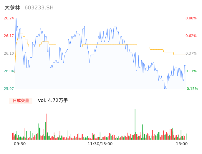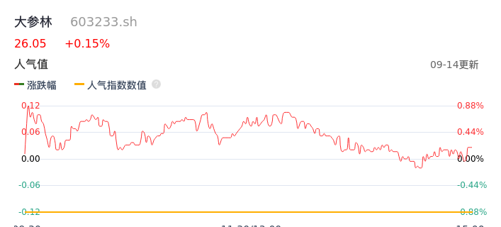 09月14日,大参林收报26.05,股价涨幅0.15%,成交金额1.23亿元,换手率0.41%。