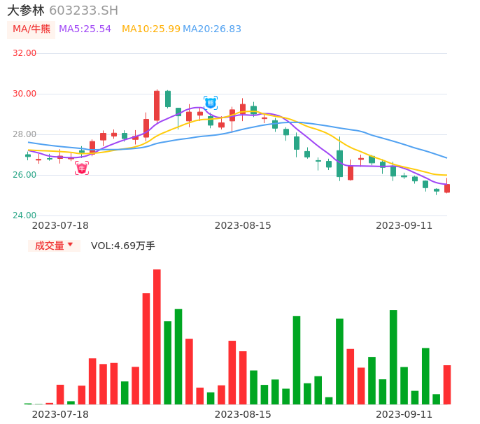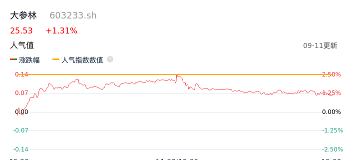 09月11日,大参林收报25.53,股价涨幅1.31%,成交金额1.20亿元,换手率0.41%。