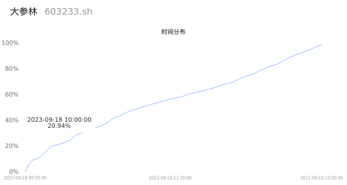 根据成交分布分析,该股票当天放量成交,成交清淡。时间上看,早盘前半小时成交量占据当天总成交量的20.94%;价格上看,成交呈现中间峰。成交分布分析主要研究股票成交的分布特性,不具有预测功能,请知悉。
