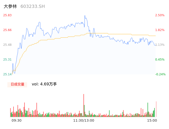 09月11日,大参林收报25.53,股价涨幅1.31%,成交金额1.20亿元,换手率0.41%。