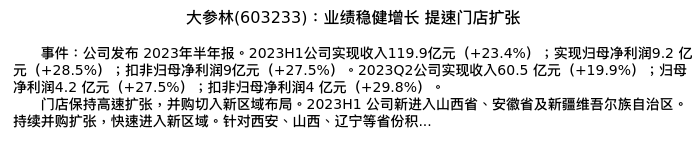 值得注意的是:2023年09月西南证券的杜向阳分析师,首次发布关于大参林的研究报告,标题为:大参林(603233):业绩稳健增长 提速门店扩张。
