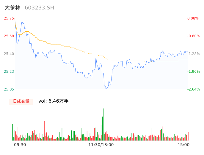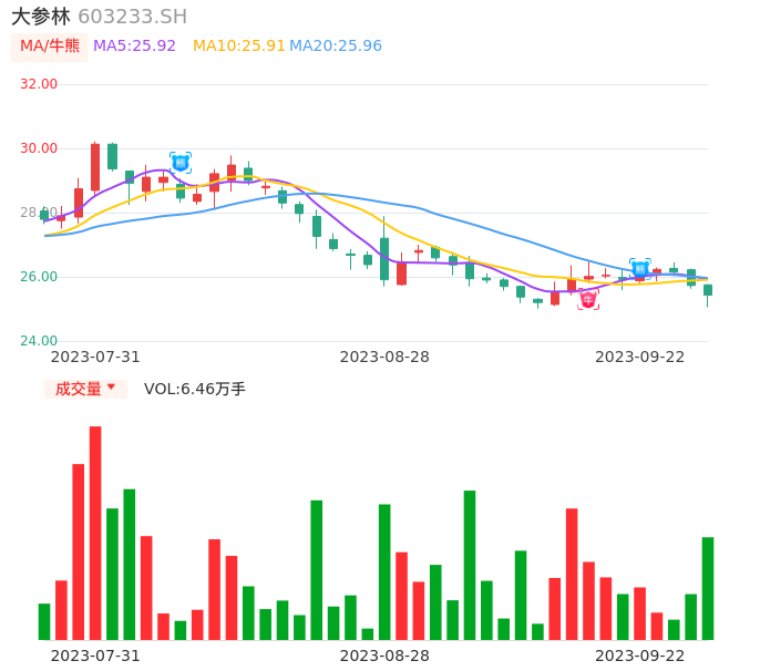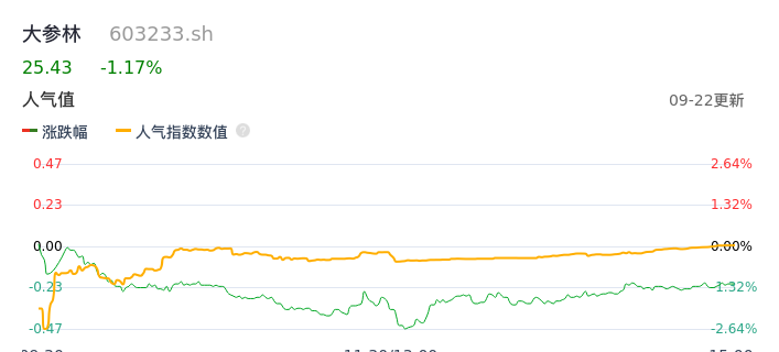 09月22日,大参林收报25.43,股价涨幅-1.17%,成交金额1.64亿元,换手率0.57%。