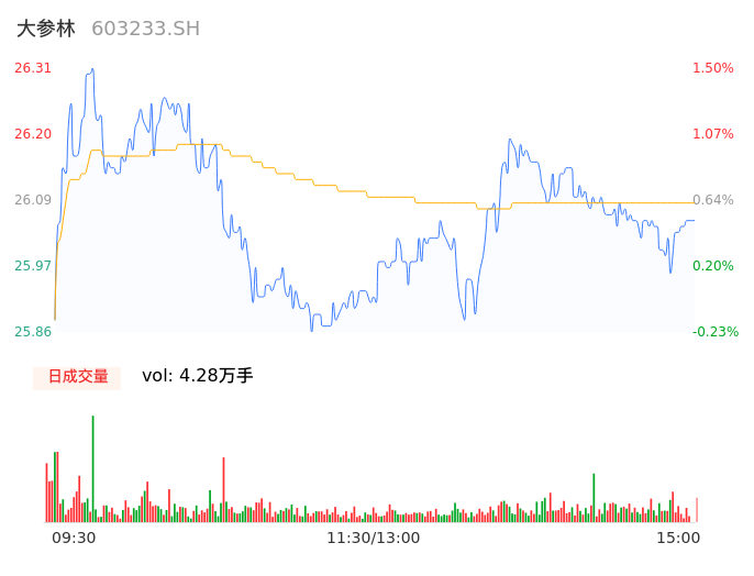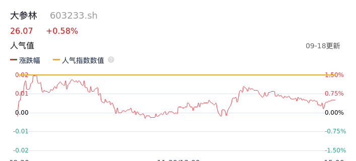 09月18日,大参林收报26.07,股价涨幅0.58%,成交金额1.12亿元,换手率0.38%。