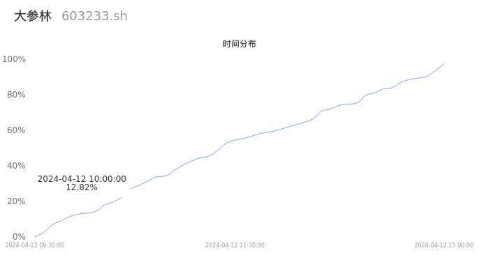 根据成交分布分析,该股票当天放量成交,成交清淡。时间上看,早盘前半小时成交量占据当天总成交量的12.82%;价格上看,成交呈现中间峰。成交分布分析主要研究股票成交的分布特性,不具有预测功能,请知悉。
