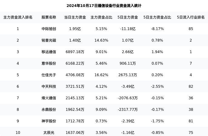 从主力资金流向来看,通信设备行业今日主力资金流入142.77亿,在所有申万二级行业中排名:91/131。