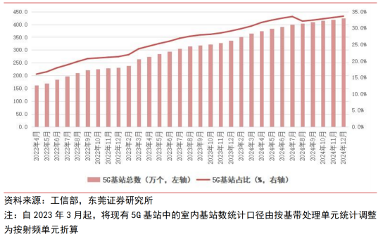 F)5G基站数量:根据工信部数据,2024年12月5G基站总数达425.1万个,比上年末净增87.4万个。5G基站占移动电话基站总数达33.6%,占比较上年末提升4.5个百分点。