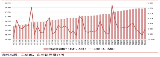 A)移动电话用户规模:根据工信部数据,2025年2月移动电话用户规模约17.93亿户,同比上升3.84%,环比上升0.18%。