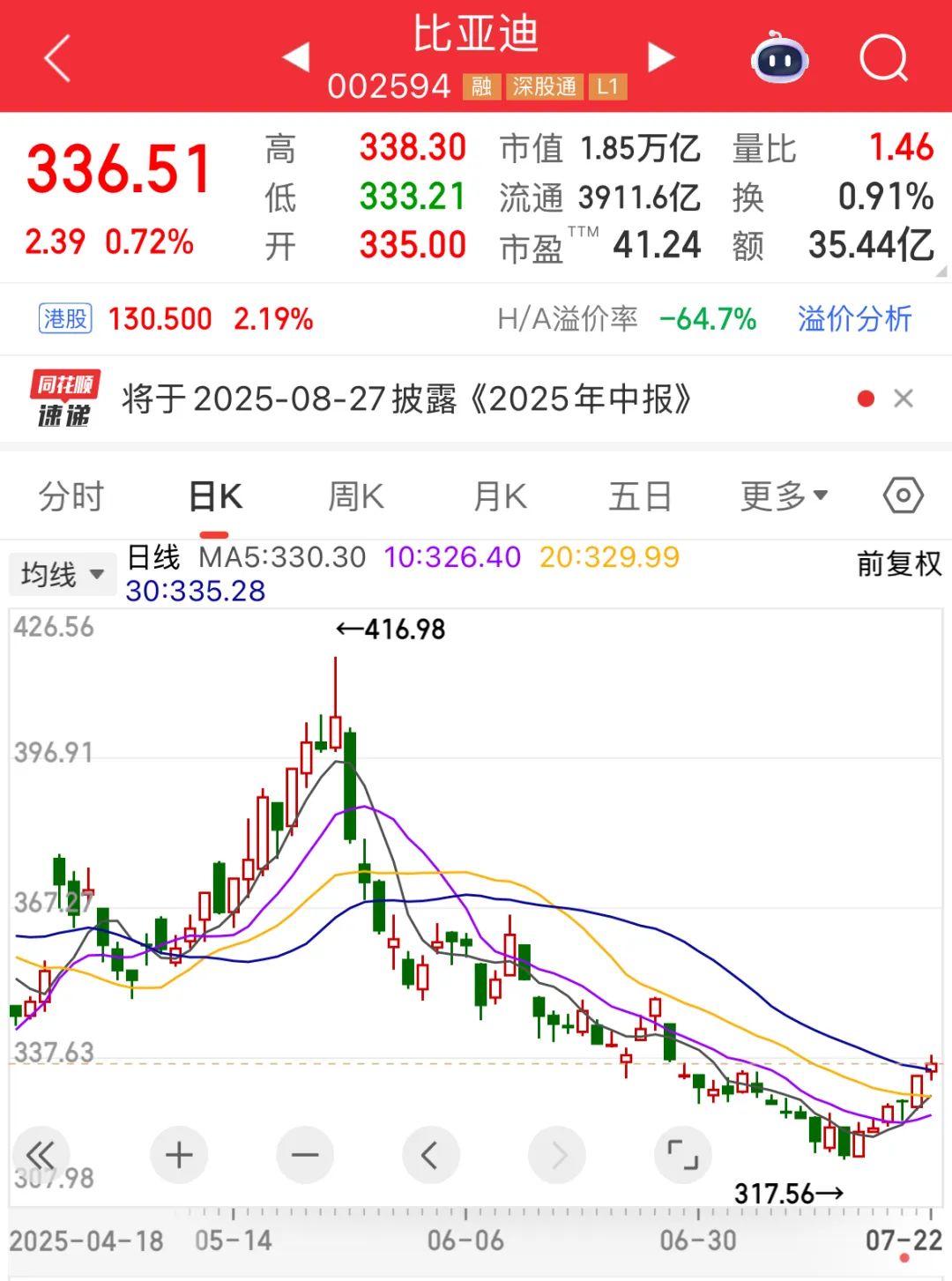 7月21日晚间,比亚迪(002594)发布公告,公司以目前总股本30.39亿股为基数,向全体股东每10股派发现金红利39.74元(含税),现金红利总额约为120.77亿元,每10股送红股8股,以资本公积金每10股转增12股。本次权益分派除权除息日为2025年7月29日。