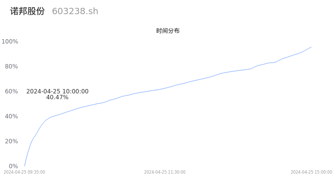 603238诺邦股份2024年04月25日成交4.31万手,成交金额4715.47万元,相较昨日缩量3.22万手,换手率2.43%,成交清淡。