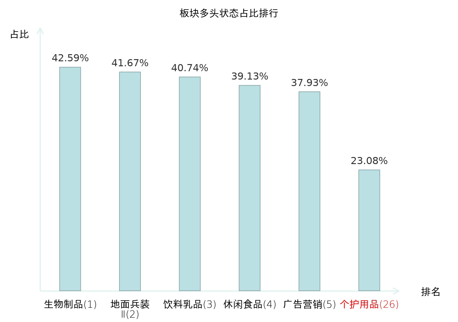 全市场所有行业板块中主力多头状态占比排名中,生物制品板块位居第一。黑色家电板块名次提升最快,较昨日上升65位。