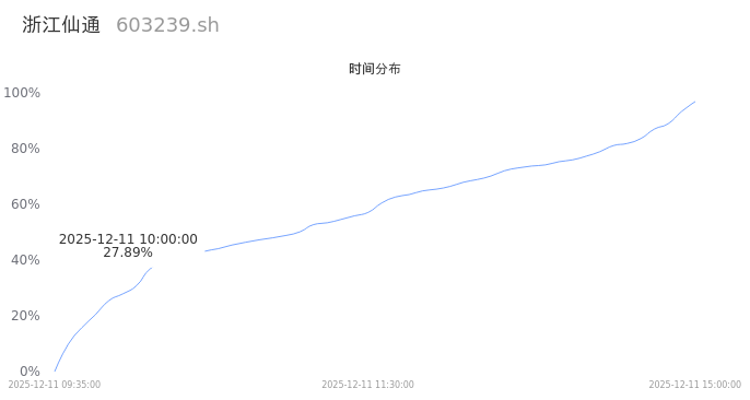 603239浙江仙通2025年12月11日成交9.02万手,成交金额1.99亿,相较昨日缩量3.51万手,换手率3.33%,成交清淡。