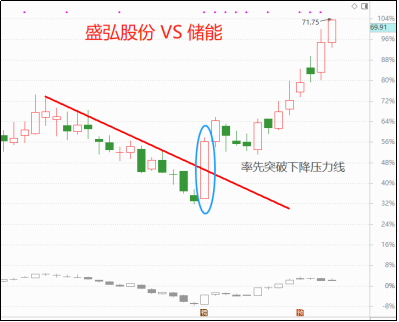 储能龙头盛弘股份,早在12月26日便突破了下降压力线,领先于指数提前企稳。此后该股略作整理后,连续爆发,最终成为储能板块中走势最稳定、表现最突出的个股。