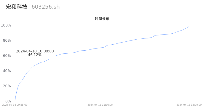 603256宏和科技2024年04月18日成交9.10万手,成交金额5787.44万元,相较昨日缩量1290手,换手率1.03%,成交清淡。