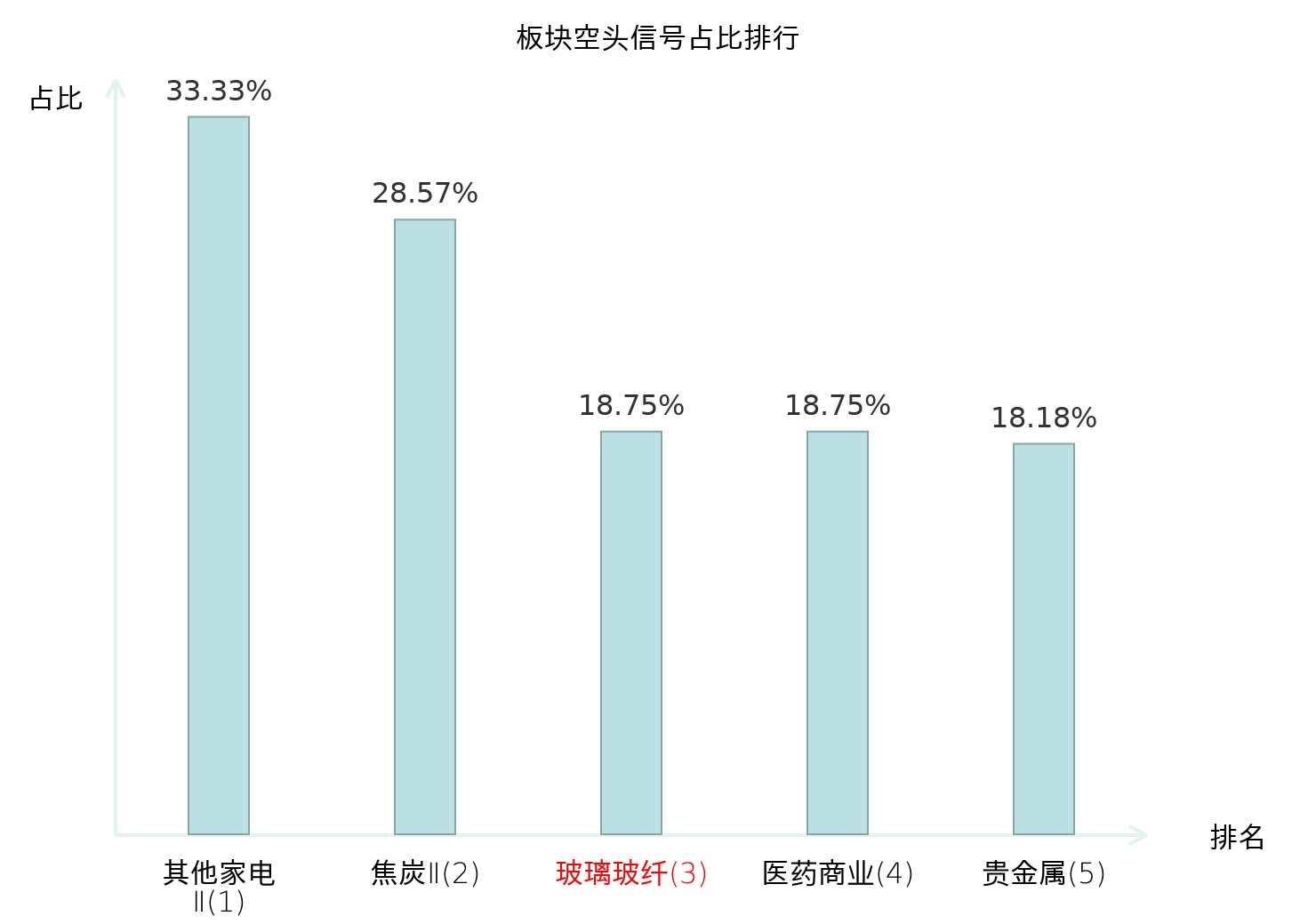 全市场所有行业板块中主力空头信号占比排名中,其他家电Ⅱ板块位居第一。工业金属板块名次提升最快,较昨日上升114位。