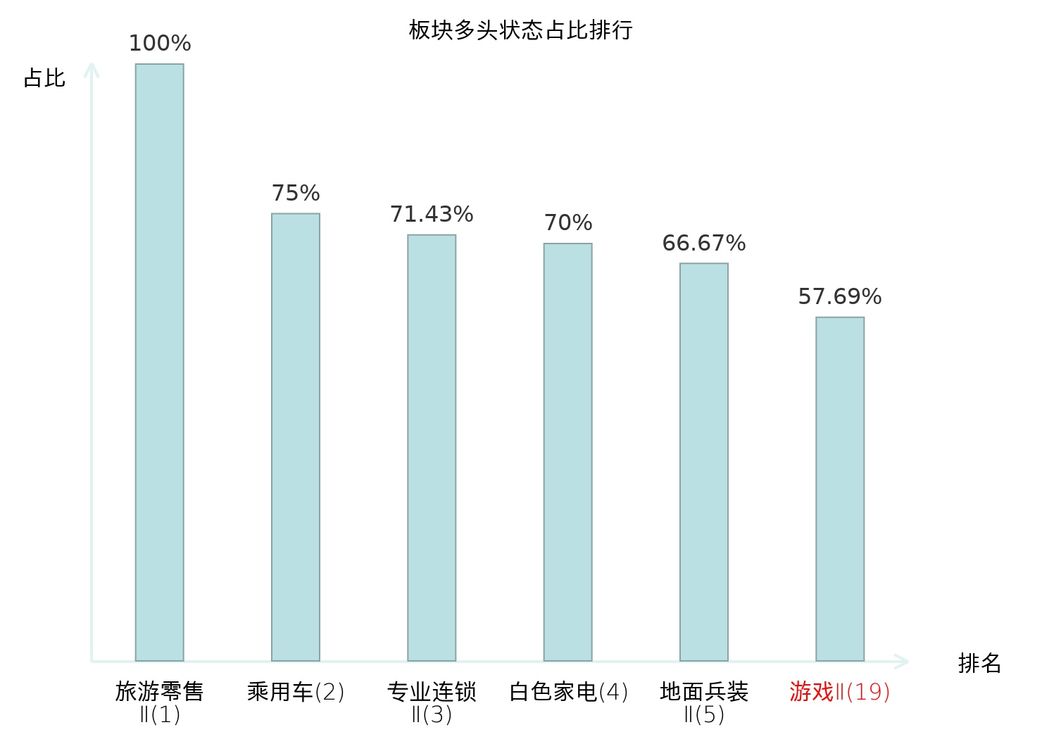 全市场所有行业板块中主力多头状态占比排名中,旅游零售Ⅱ板块位居第一。焦炭Ⅱ板块名次提升最快,较昨日上升105位。