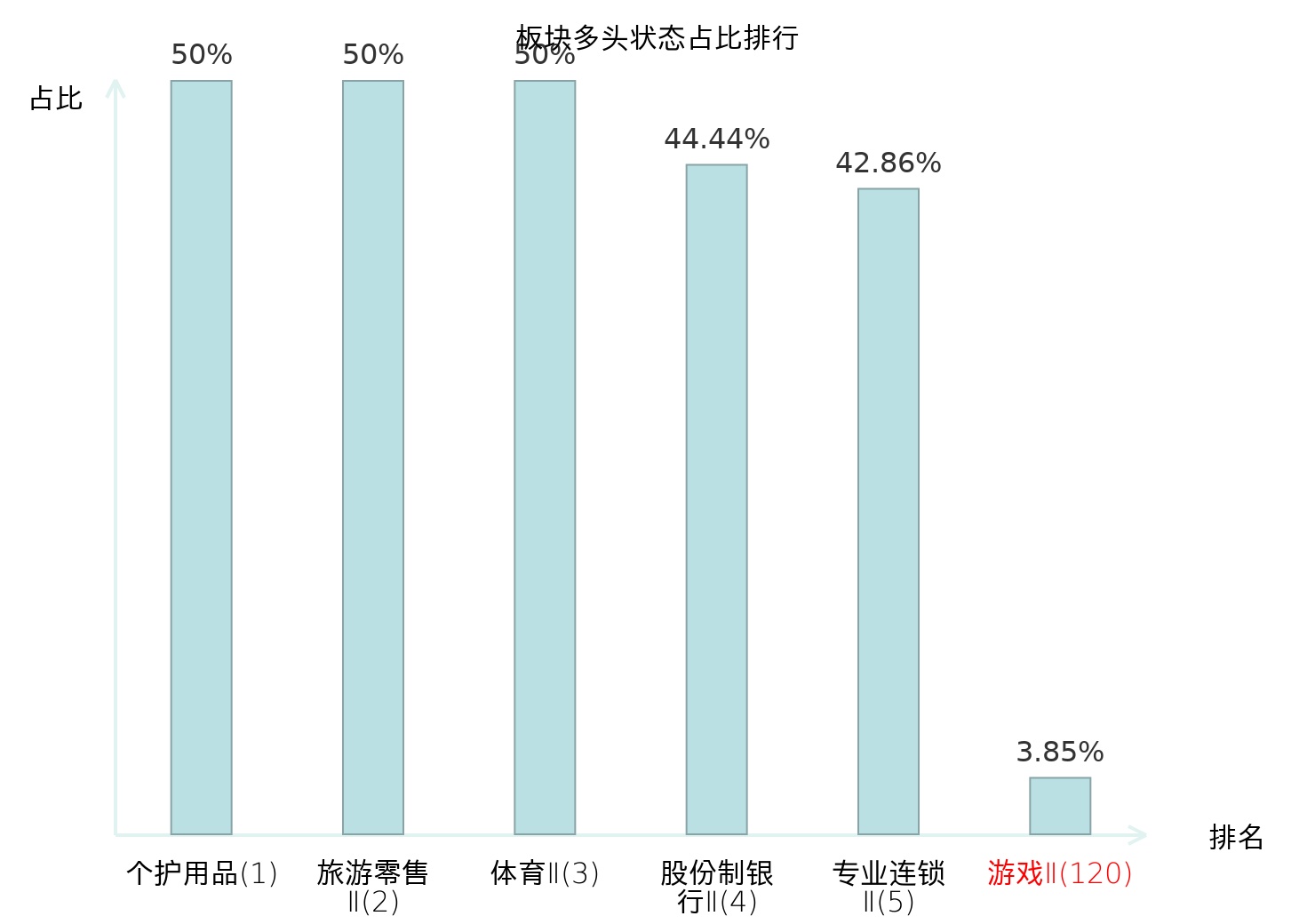 全市场所有行业板块中主力多头状态占比排名中,个护用品板块位居第一。非金属材料Ⅱ板块名次提升最快,较昨日上升37位。