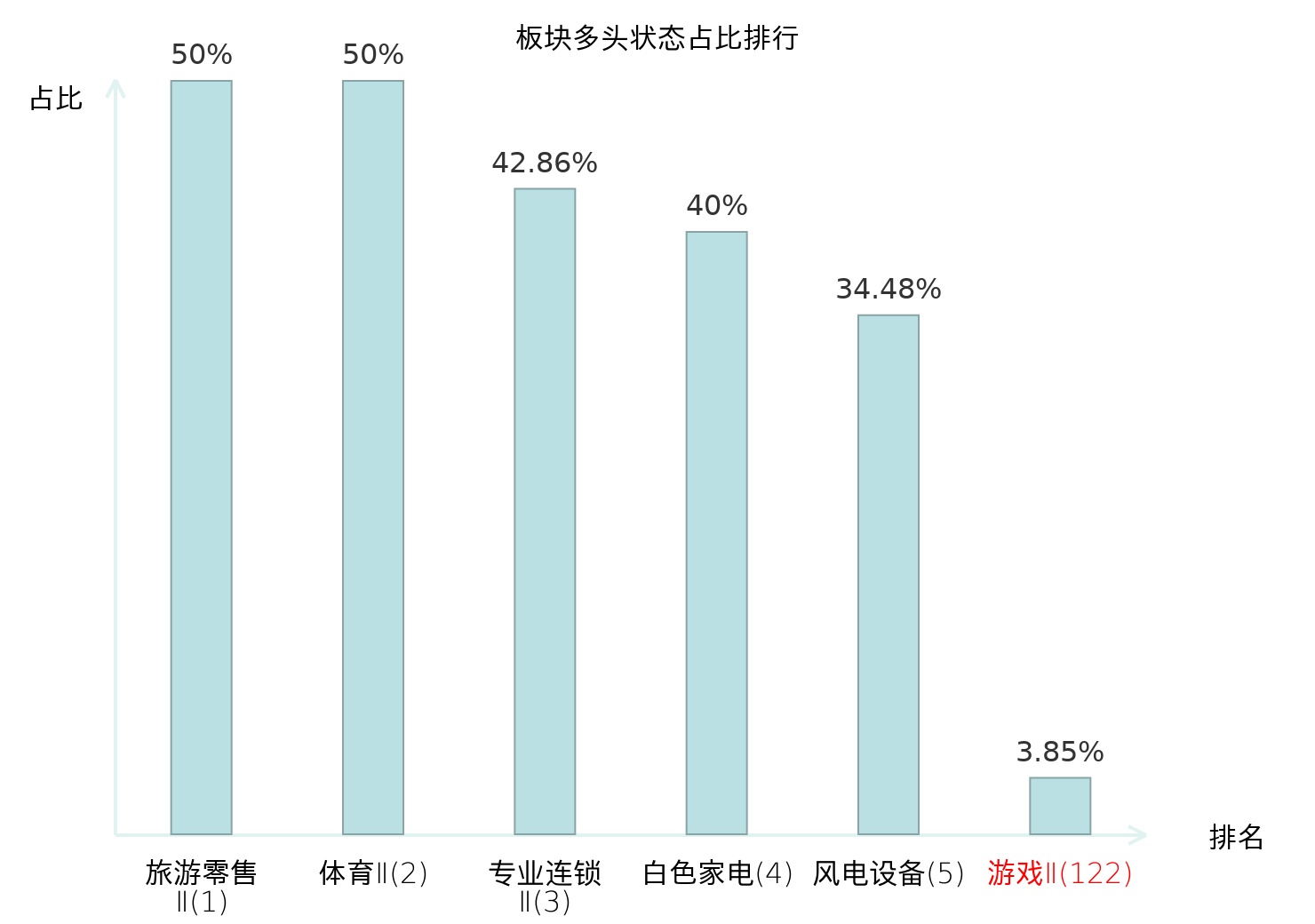 全市场所有行业板块中主力多头状态占比排名中,旅游零售Ⅱ板块位居第一。能源金属板块名次提升最快,较昨日上升50位。