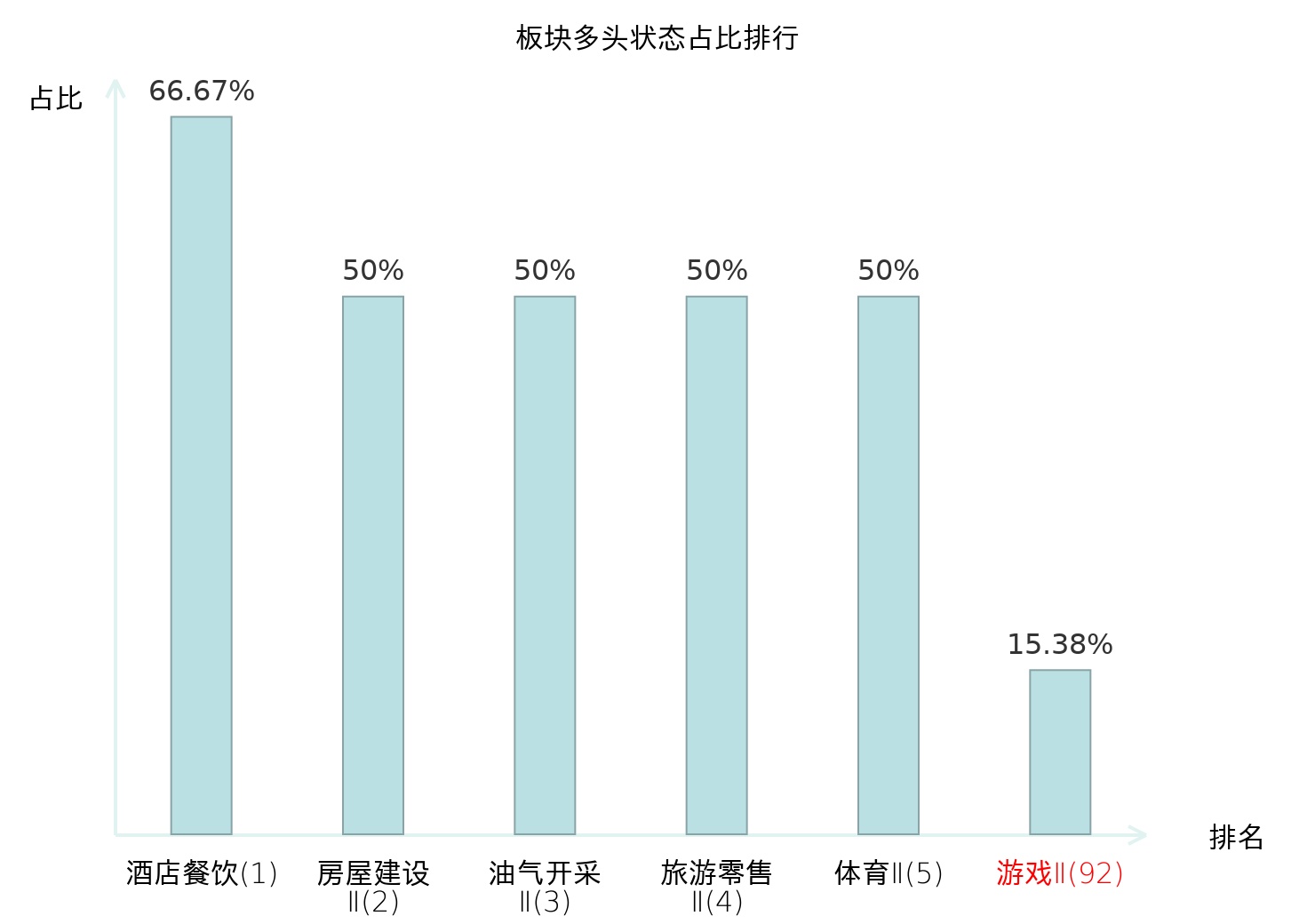 全市场所有行业板块中主力多头状态占比排名中,酒店餐饮板块位居第一。农商行Ⅱ板块名次提升最快,较昨日上升50位。