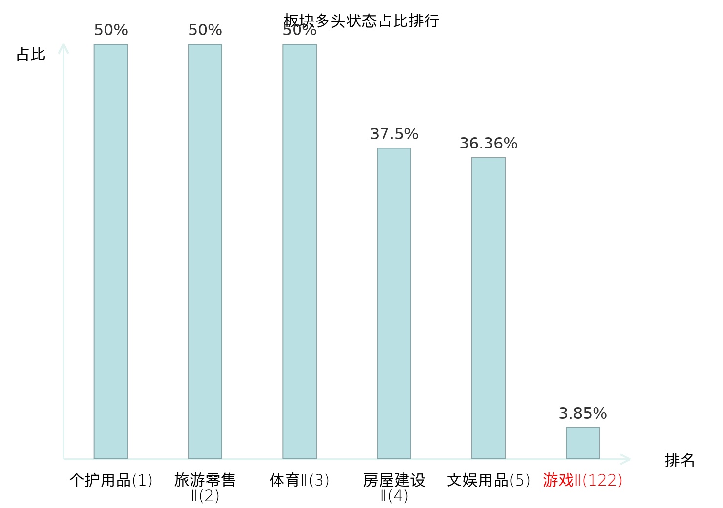 全市场所有行业板块中主力多头状态占比排名中,个护用品板块位居第一。焦炭Ⅱ板块名次提升最快,较昨日上升68位。