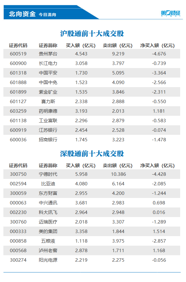 9月21日,北向资金全天净卖出43.3亿元,连续3日减仓;其中沪股通净卖出22.63亿元,深股通净卖出20.67亿元。