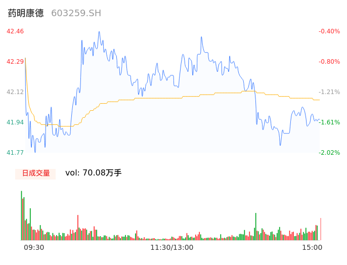 04月24日,药明康德收报41.96,股价涨幅-1.57%,成交金额29.48亿元,换手率2.75%。