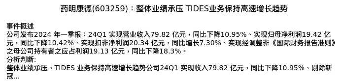 值得注意的是:2024年05月华西证券的崔文亮/徐顺利分析师,首次发布关于药明康德的研究报告,标题为:药明康德(603259):整体业绩承压 TIDES业务保持高速增长趋势。