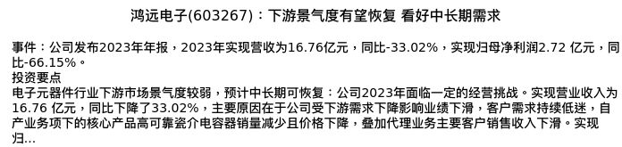 值得注意的是:2024年03月东吴证券的苏立赞/许牧/高正泰分析师,首次发布关于鸿远电子的研究报告,标题为:鸿远电子(603267):下游景气度有望恢复 看好中长期需求。
