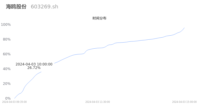 根据成交分布分析,该股票当天缩量成交,成交清淡。时间上看,早盘前半小时成交量占据当天总成交量的26.72%;价格上看,成交呈现中间峰。成交分布分析主要研究股票成交的分布特性,不具有预测功能,请知悉。