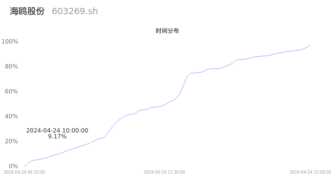 根据成交分布分析,该股票当天放量成交,成交清淡。时间上看,早盘前半小时成交量占据当天总成交量的9.17%;价格上看,成交呈现右偏峰。成交分布分析主要研究股票成交的分布特性,不具有预测功能,请知悉。