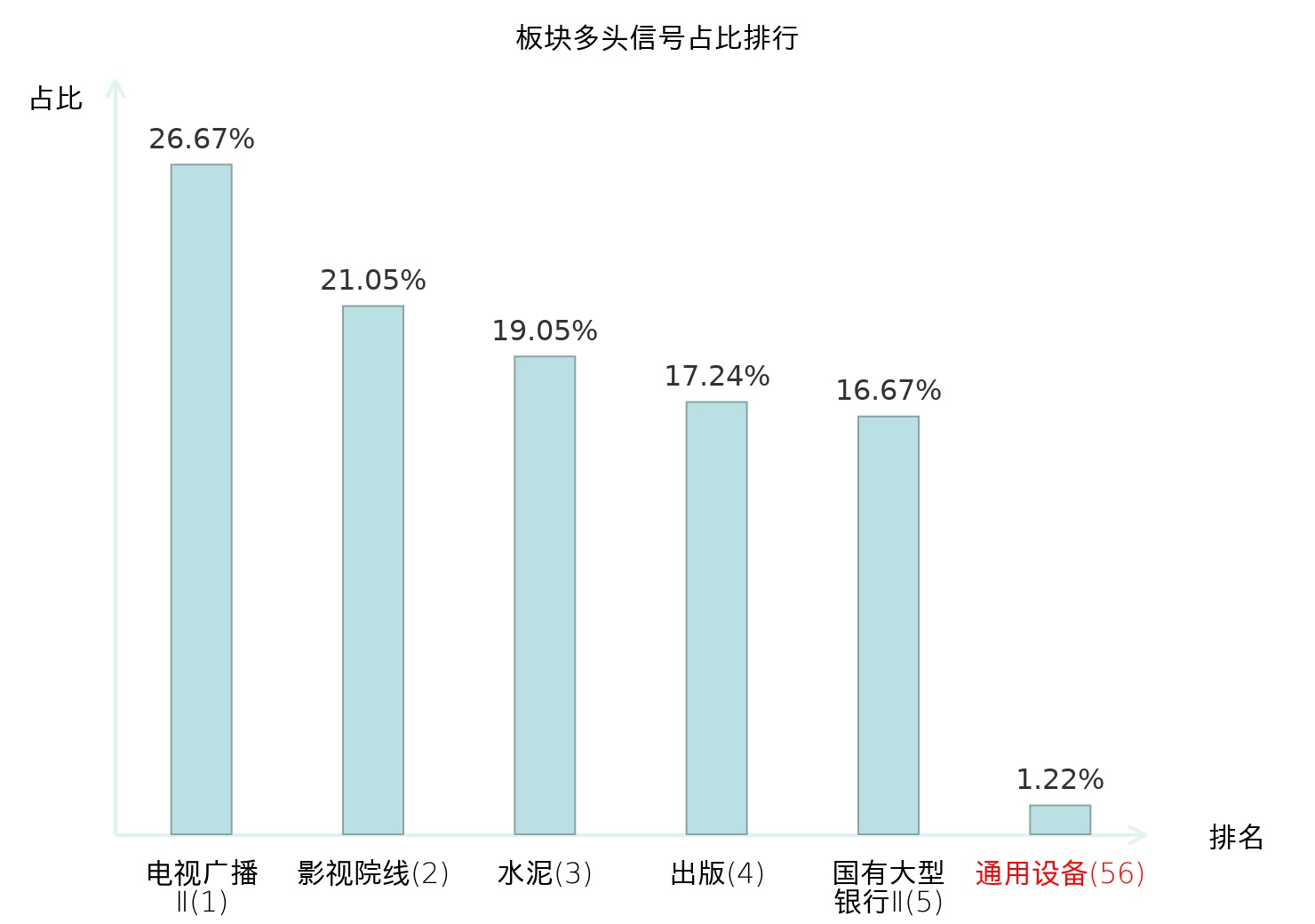 全市场所有行业板块中主力多头信号占比排名中,电视广播Ⅱ板块位居第一。国有大型银行Ⅱ板块名次提升最快,较昨日上升118位。