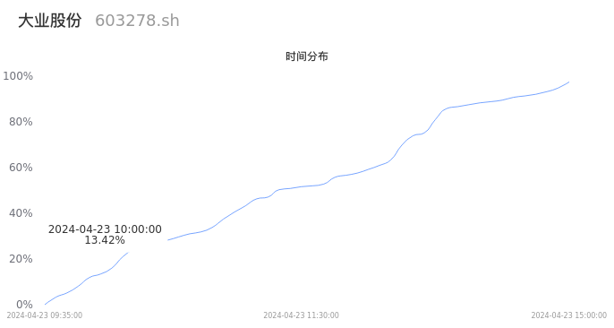 603278大业股份2024年04月23日成交3.61万手,成交金额3381.94万元,相较昨日缩量1051手,换手率1.06%,成交清淡。