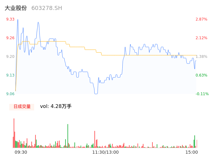 04月30日,大业股份收报9.18,股价涨幅1.21%,成交金额3936.35万元,换手率1.25%。