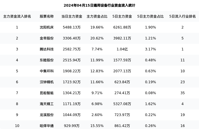 从主力资金流向来看,通用设备行业今日主力资金流入45.96亿元,在所有申万二级行业中排名:35/131。