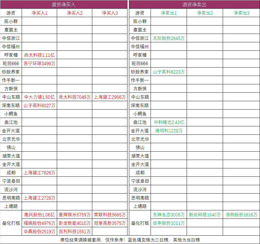 游资动向: