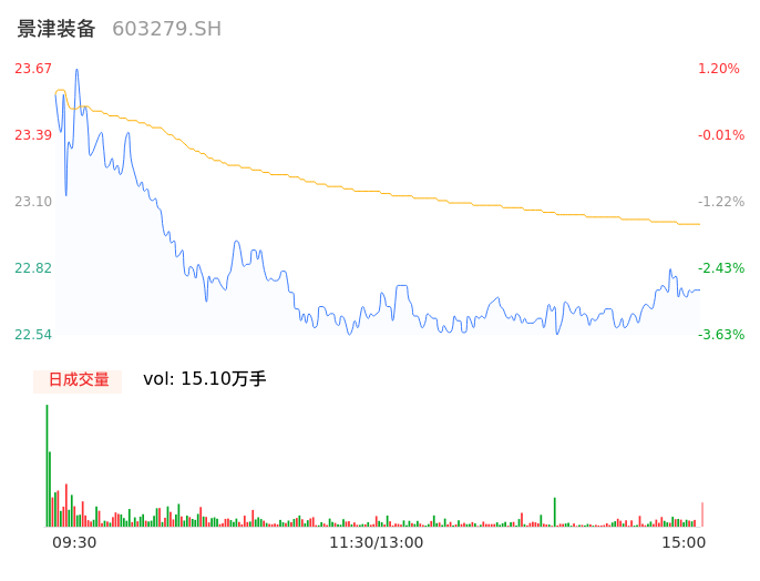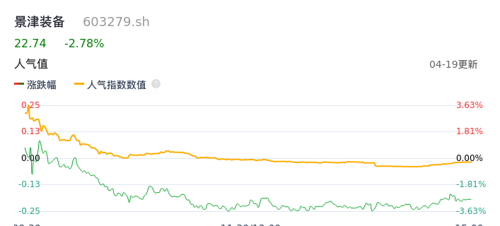 04月19日,景津装备收报22.74,股价涨幅-2.78%,成交金额3.47亿元,换手率2.66%。
