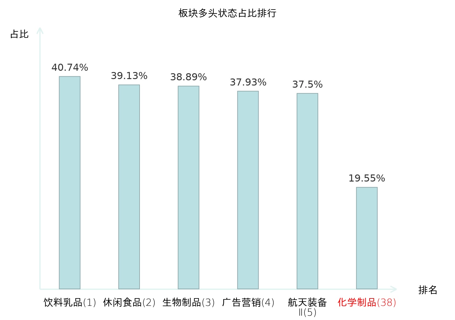 全市场所有行业板块中主力多头状态占比排名中,饮料乳品板块位居第一。国有大型银行Ⅱ板块名次提升最快,较昨日上升71位。