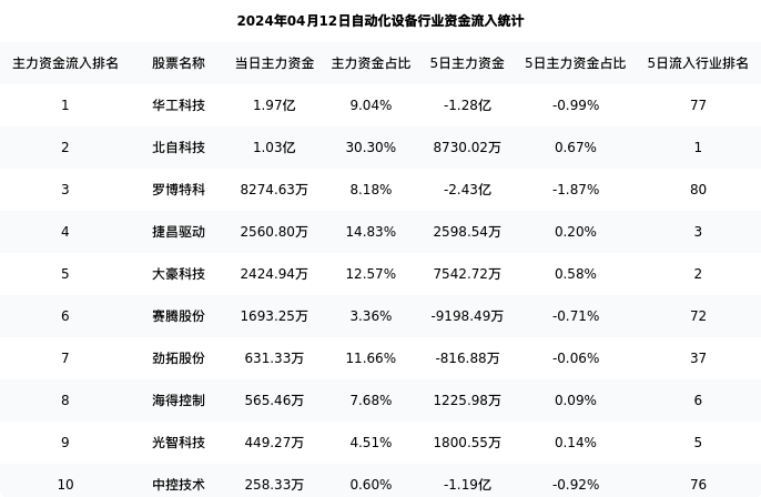 从主力资金流向来看,自动化设备行业今日主力资金流入34.70亿元,在所有申万二级行业中排名:86/131。