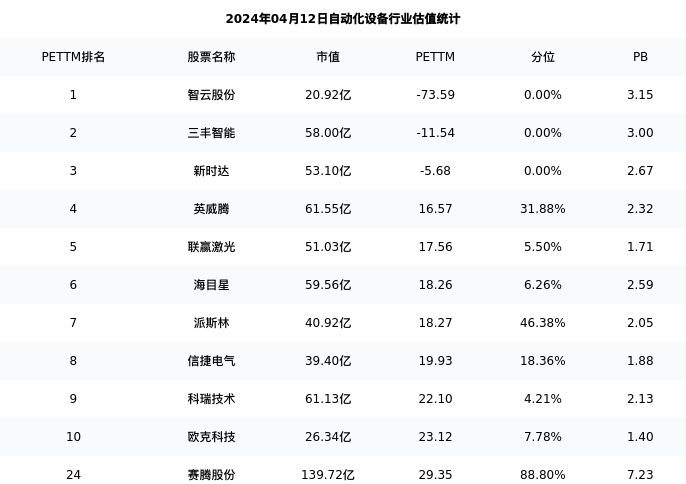 从估值角度看:赛腾股份最新市盈率PETTM为29.35,在行业内排名21/80,处于88.80分位。