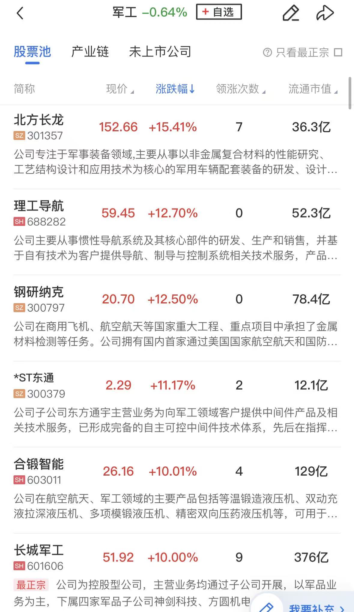 军工板块同样逆势走强,长城军工2连板,奥普光电涨停,北方长龙、捷强装备、理工导航、内蒙一机、晨曦航空等涨幅居前。