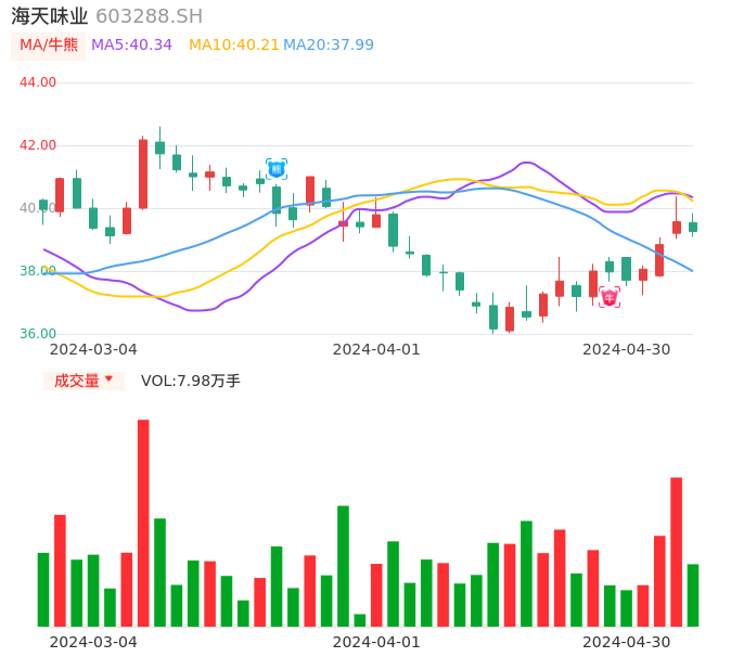 值得注意的是:2024年04月天风证券的吴立/何宇航分析师,首次发布关于海天味业的研究报告,标题为:海天味业(603288):24Q1恢复增势 看好全年稳增长。