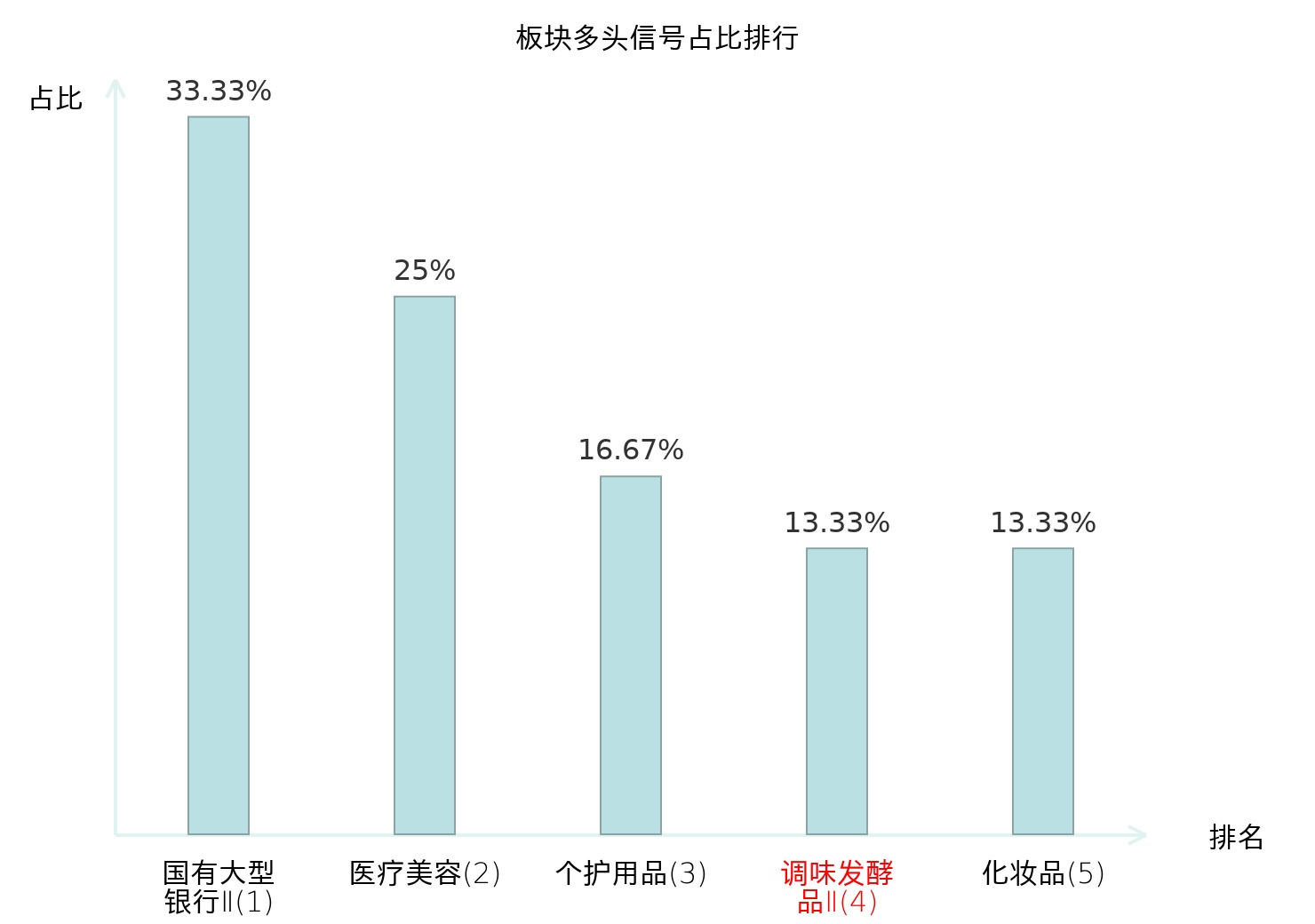 全市场所有行业板块中主力多头信号占比排名中,国有大型银行Ⅱ板块位居第一。医疗美容板块名次提升最快,较昨日上升125位。