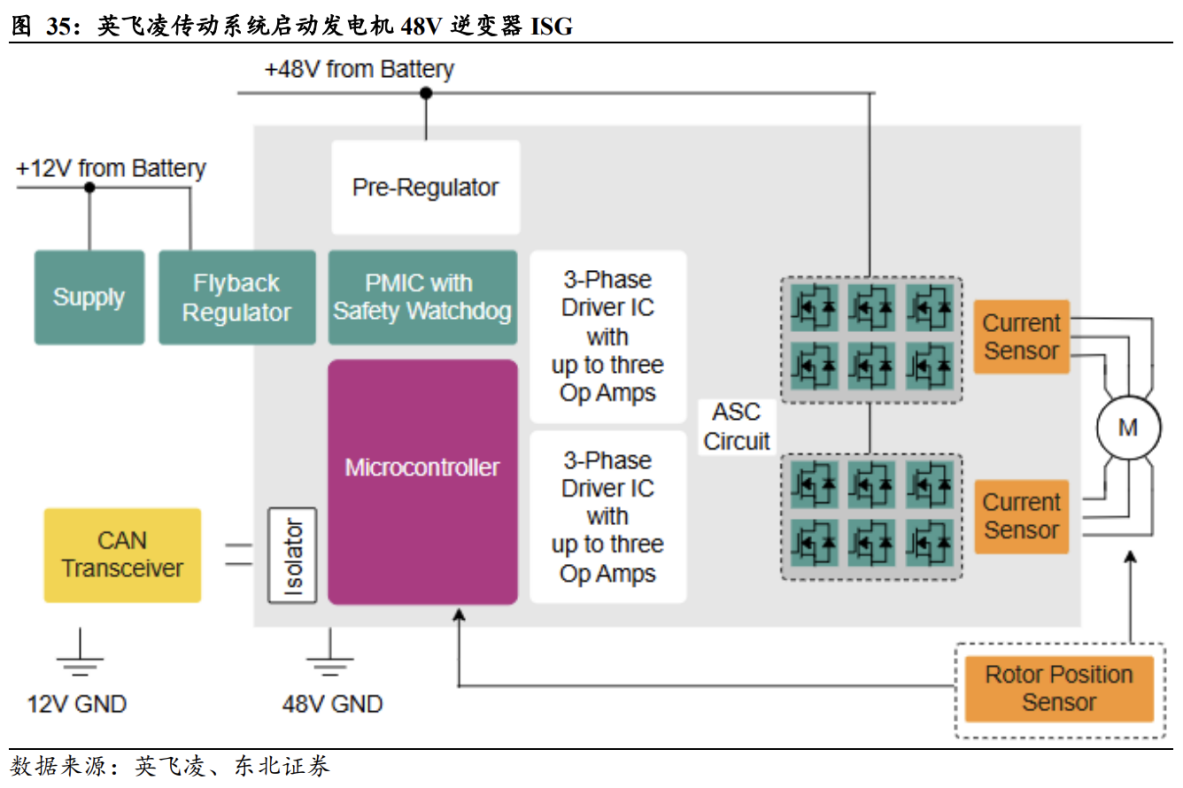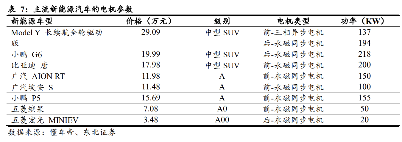 新能源汽车IGBT使用量与电机数量与电机功率密切相关。特斯拉ModelX双电机中后电机用到96个IGBT单管,前电机用到36个单管,累计使用132个IGBT单管。后电机的三相交流异步电机控制器中,每相用28个IGBT单管,累计84个,其他电机12个IGBT单管,共用到96个IGBT单管;前电机中的小功率电驱控制器使用36个IGBT芯片,每6个相并联。每个单管的价格大约4-5美元,单车IGBT成本大约480-660美元。可见IGBT使用量跟车中电机数量有关,从下表可以可知,国内主流新能源汽车大多只有1个电机,且为永磁同步电机,出于安全及可靠性考虑,部分车企会多封装1个IGBT模块用于备用,因此目前国产新能源车IGBT模块使用量为1-2个。此外,功率越大的IGBT模块中集成的IGBT芯片和FRD芯片越多,价格越高。