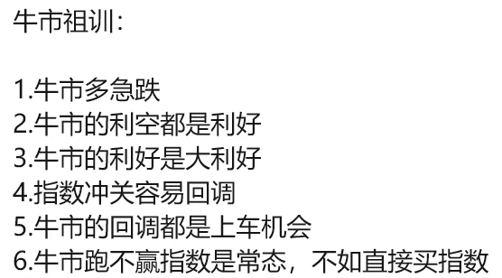 为了不让大家被洗下车,除了每天开盘前默念一遍【冰点看回暖,沸点看分化】。牛市祖训也要记牢。
