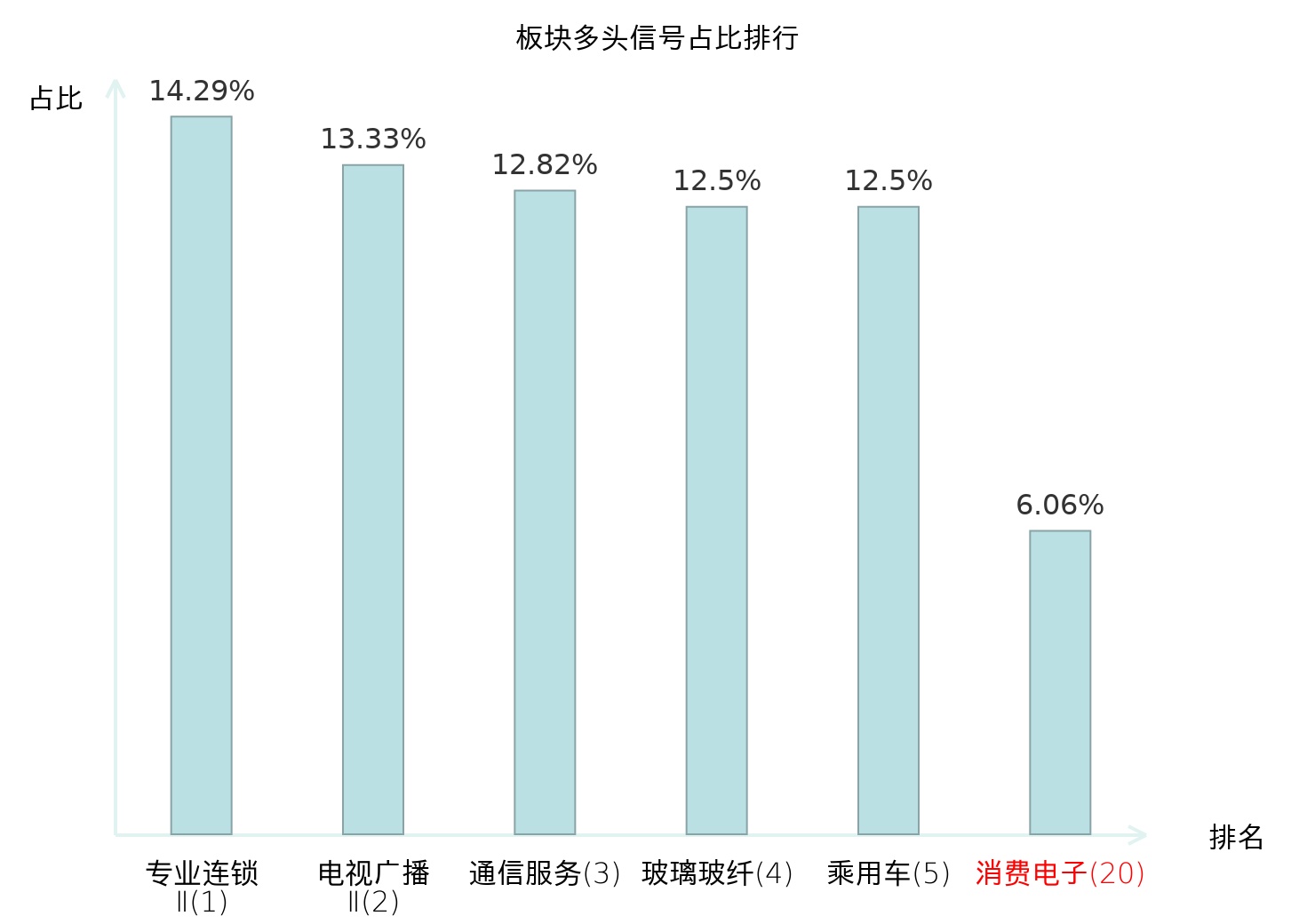 全市场所有行业板块中主力多头信号占比排名中,专业连锁Ⅱ板块位居第一。专业连锁Ⅱ板块名次提升最快,较昨日上升124位。