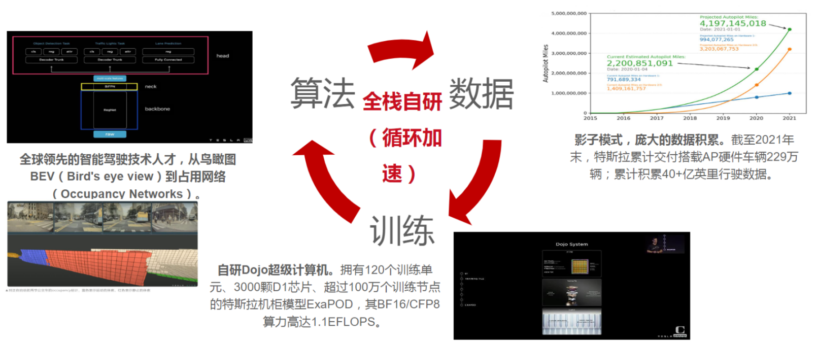 Dojo的强大能力:D1针对FSD的视觉神经网络做了专门的架构设计;且特斯拉打造了包括底软、编译器在内的全栈软件配套,结果就是: