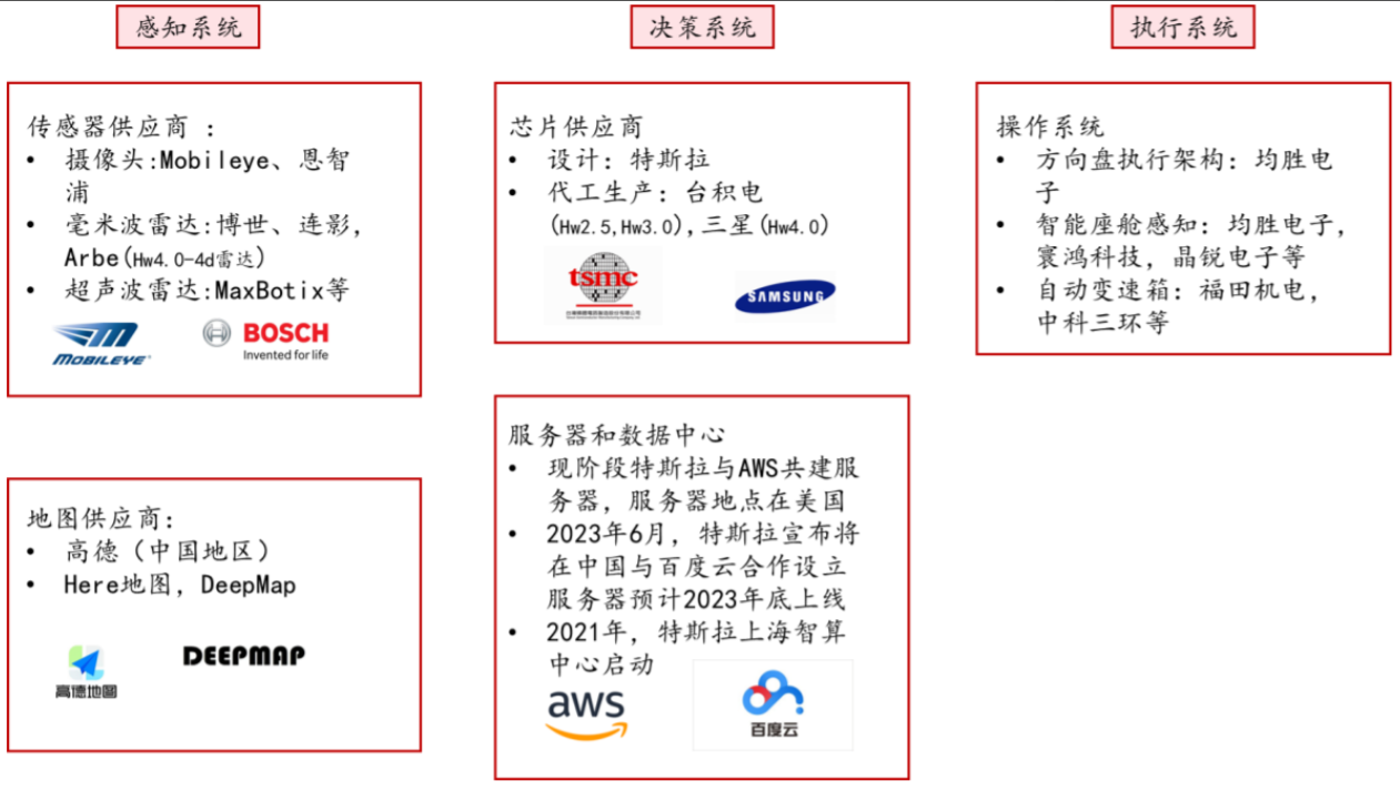 图:特斯拉 FSD 产业链分为感知、决策和执行三大模块: