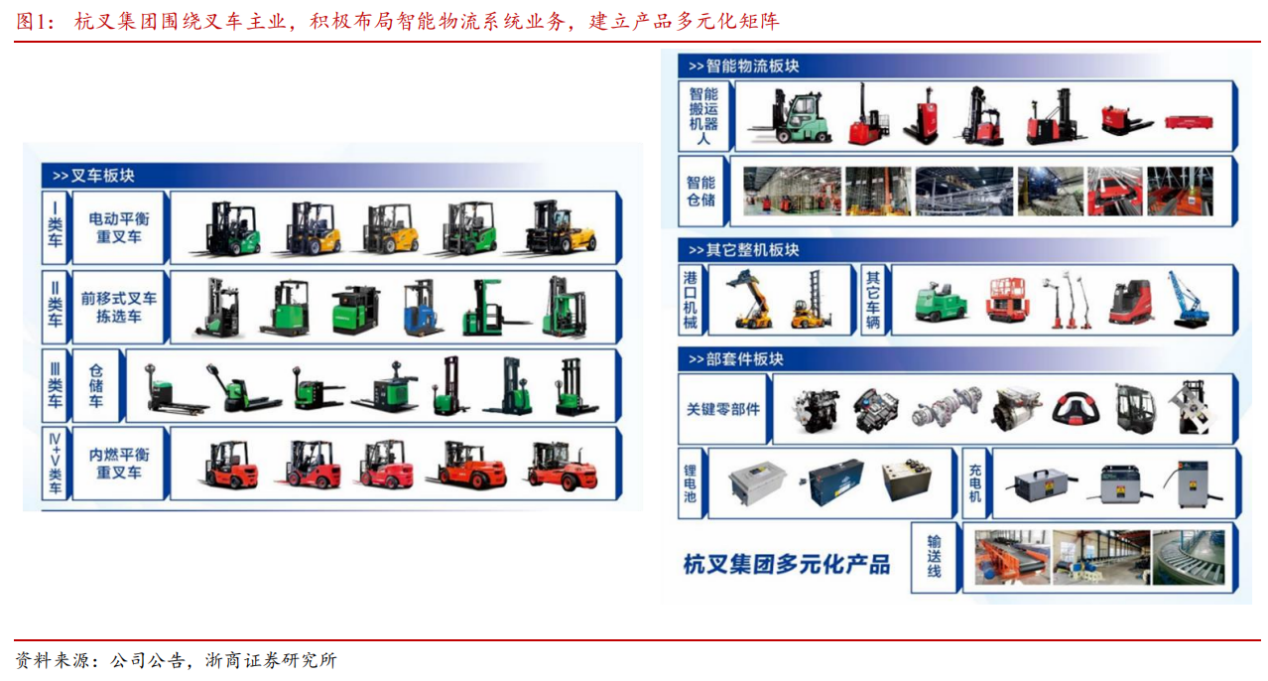 公司围绕叉车主业,积极布局智能物流系统板块,建立起多元化产品矩阵。